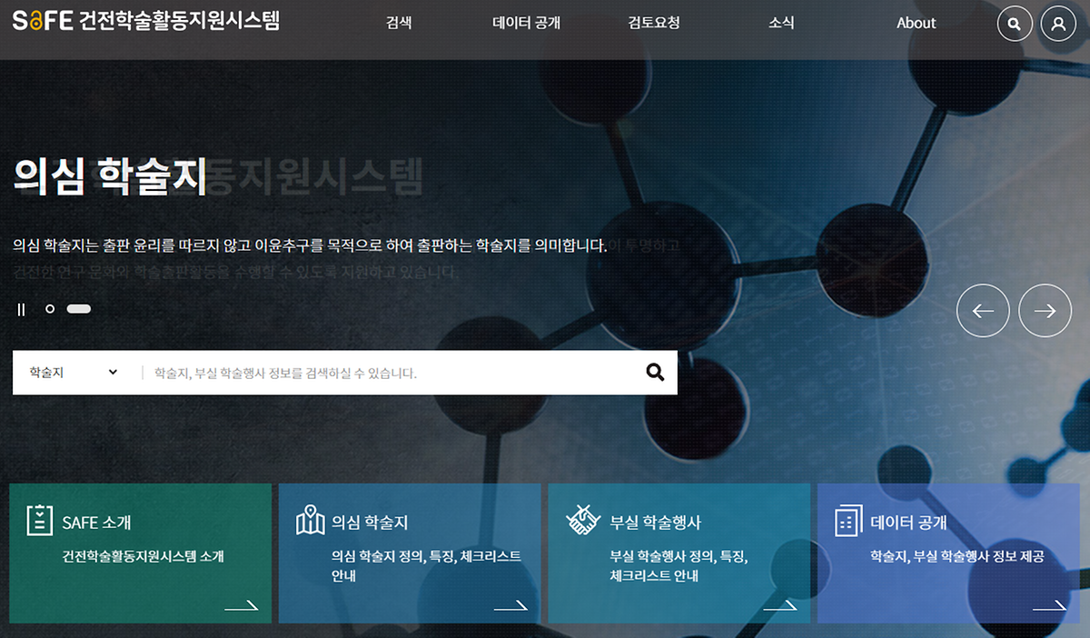 부실의심 학술지 게재 예방을 위해 "건전학술활동지원시스템" 사이트를 안내드립니다.