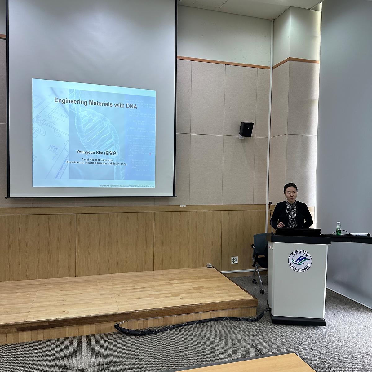 이번 기술교류회는 서울대학교 재료공학부 김영은 교수를 연사로 모시고 'DNA를 사용한 신소재 설계 '를 주제로 강연이 진행되었다.