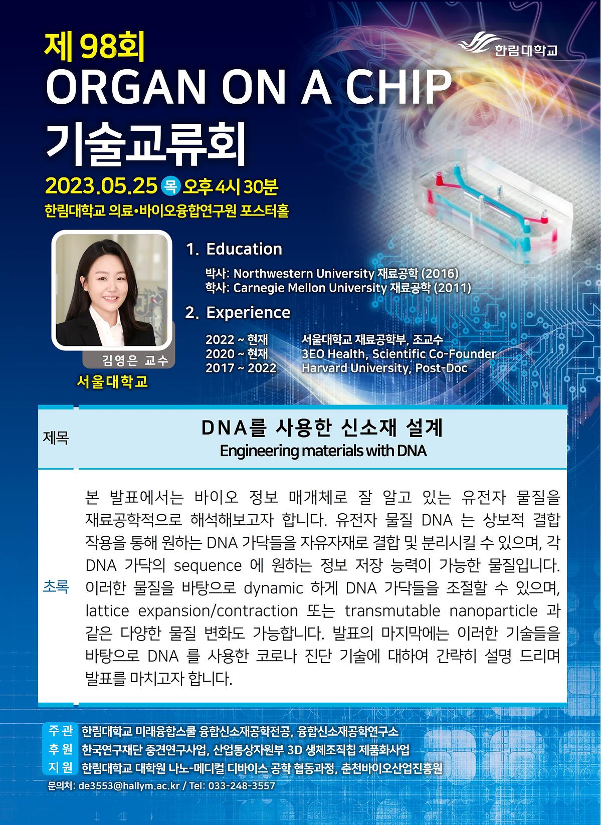 제 98회 Organ on a Chip 기술교류회가 2023년 05월26일 진행되었다.