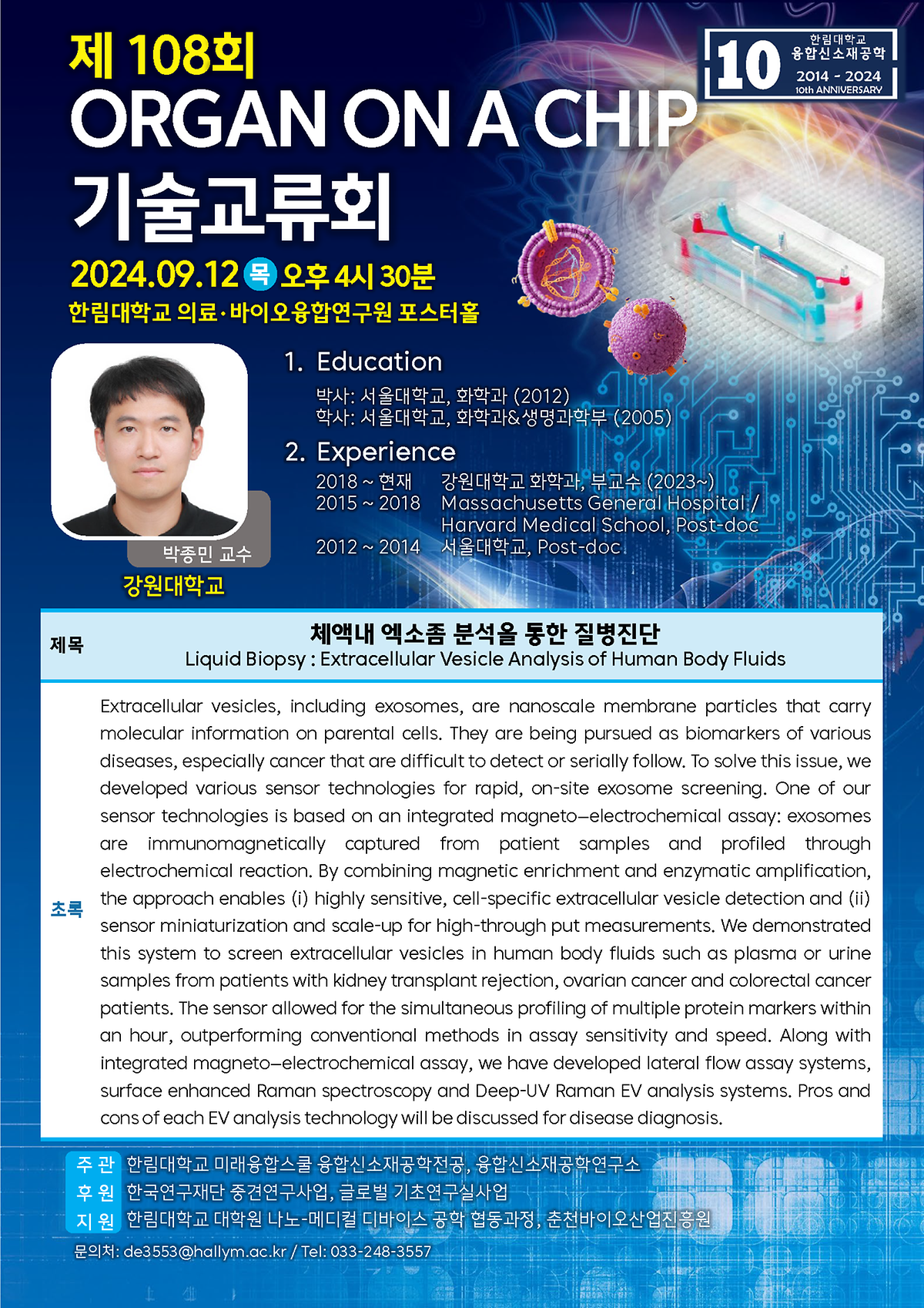 제 108회 Organ on a Chip 기술교류회 (강원대 박종민 교수)