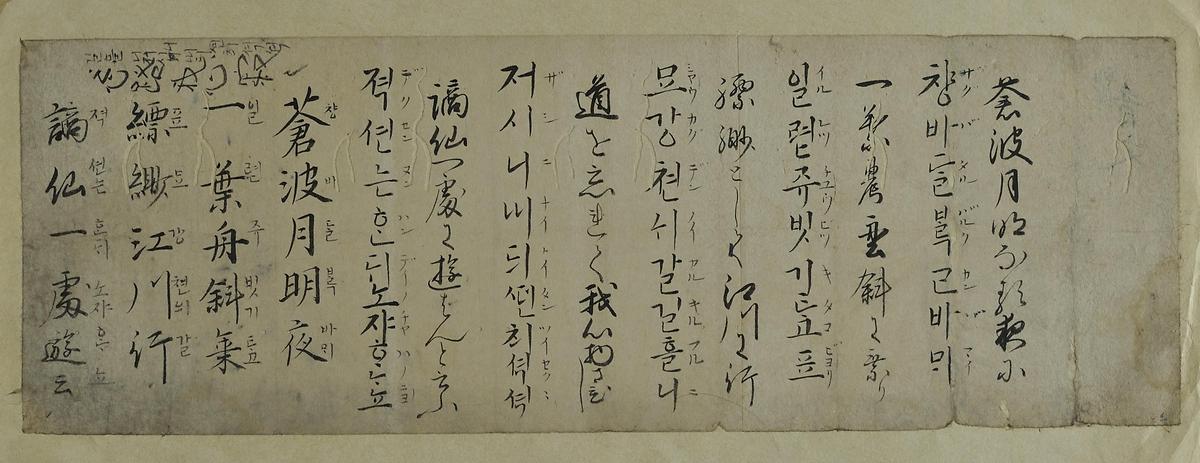 박물관에서 소장하고 있는 조선어역해문은 한시(漢詩)의 구절과 이에 대한 일본어 해석한글 해석을 번갈아 쓰고 이를 비교하여 익힐 수 있도록 작은 글씨로 가타카나를 표기한 문서입니다이를 통해 당시 일본 사람들이 조선어를 익히는 방법에 대해 살펴볼 수 있습니다.