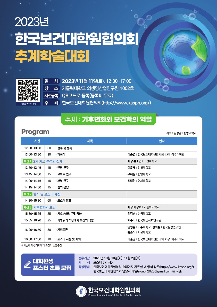 [보건학과] 2023년 한국보건대학원협의회 추계 학술대회 개최 안내