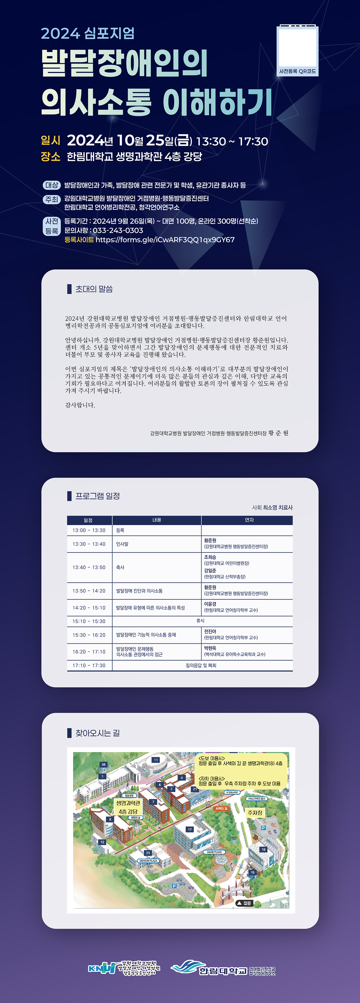 2024 강원대학교병원 행동발달증진센터, 한림대학교 언어병리학전공 공동심포지엄