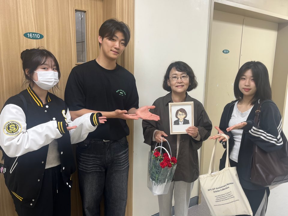 또한 스승의 날을 맞아 학생회에서는 카네이션과 직접 교수님을 그린 그림을 전달 드리는 깜짝 이벤트도 진행하였습니다.