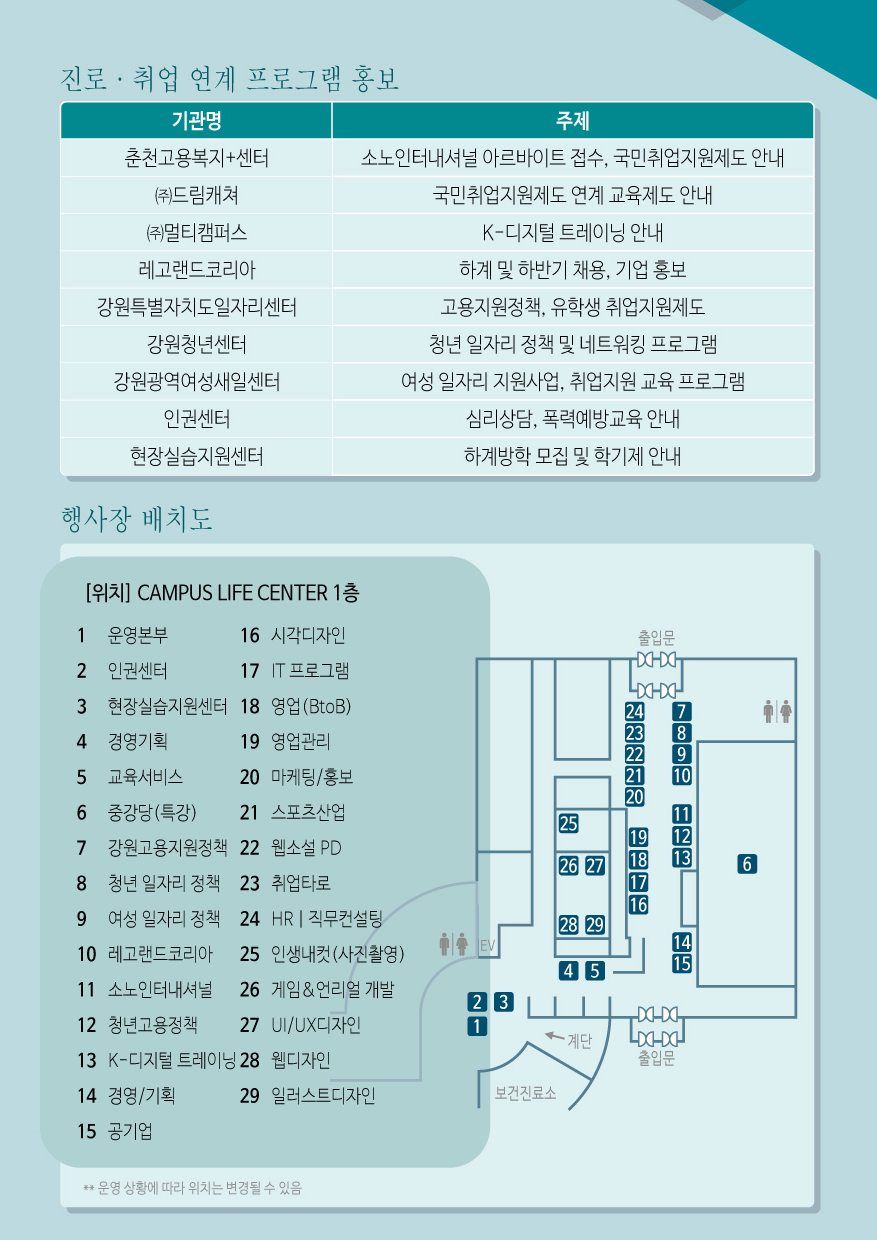 - 장소: CAMPUS LIFE CENTER 1층