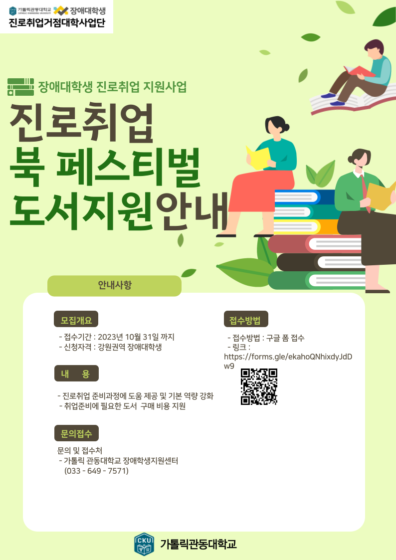 ■ 2023학년도 「장애대학생 진로취업 지원 사업」 진로취업 북 페스티벌 도서지원 프로그램 참여 안내