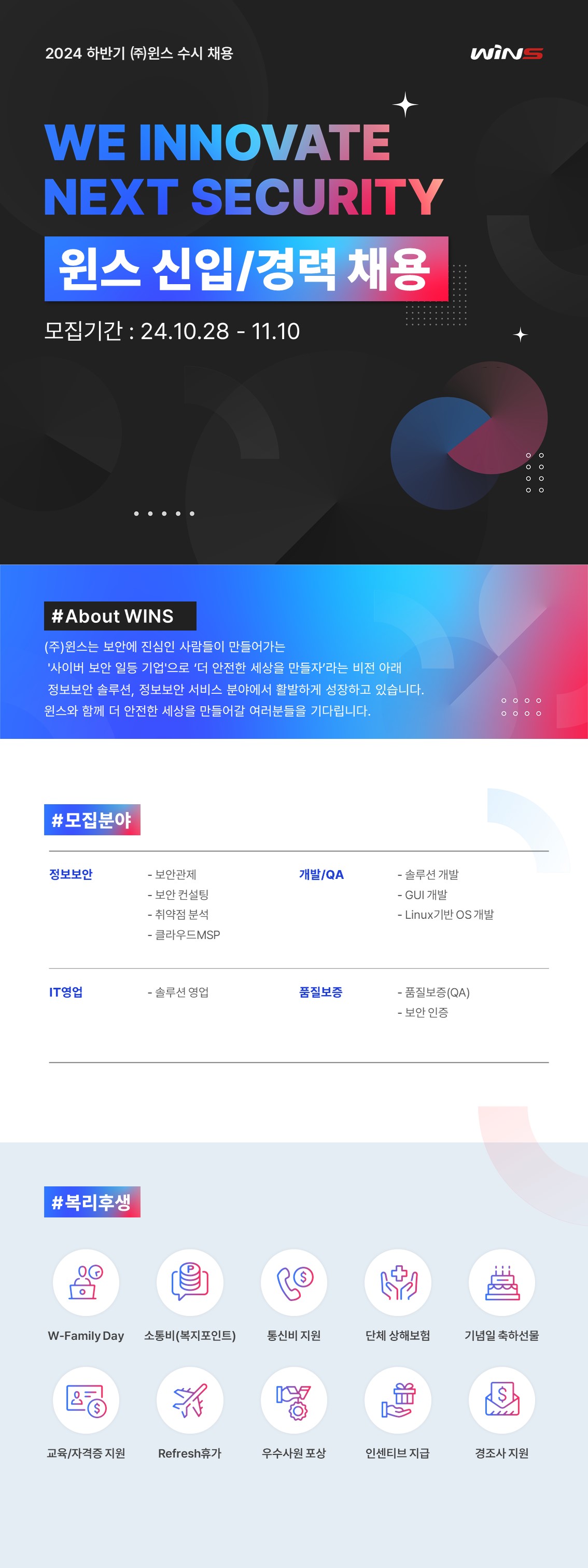 [채용공고] (주)윈스 2024 하반기 수시채용(개발, 정보보안, QA, IT영업)